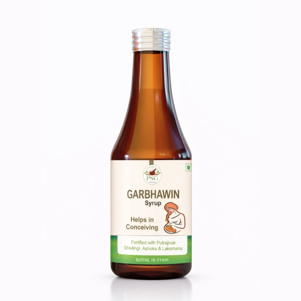 PSG Ayurvedic Garbhawin Syrup is a gentle herbal formulation that supports female reproductive health, helps regulate menstrual cycles, and assists in improving natural fertility. Crafted with traditional Ayurvedic herbs to support healthy conception.